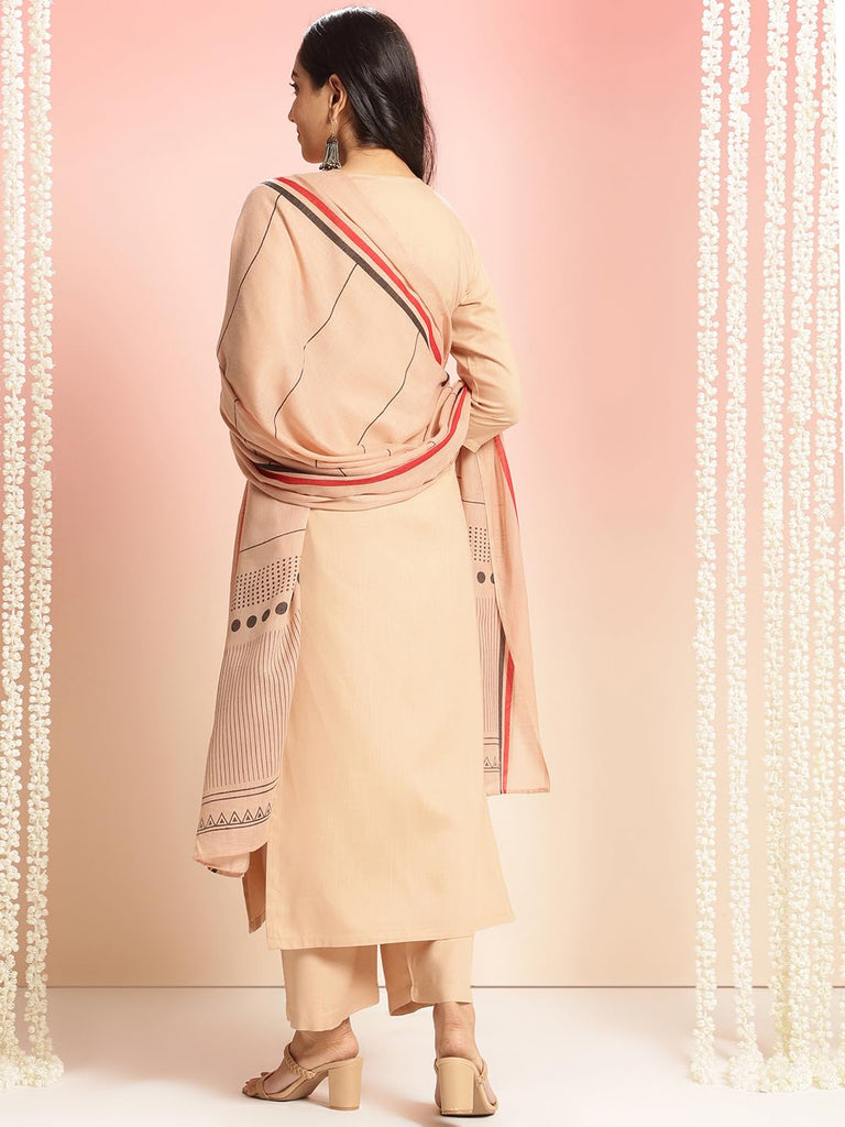 Anni Designer Women'S Rayon Viscose Floral Straight Kurta With Pant & Dupatta (Raja Saab Vks08_Beige_Medium)