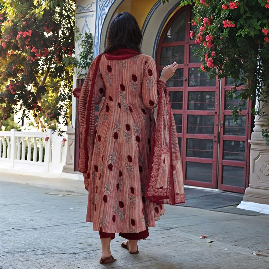 Anni Designer Women'S Rayon Viscose Printed Anarkali Kurta With Pant & Dupatta (Prisha Wine-Vks01_S_Wine_Small),Wine,S,,,