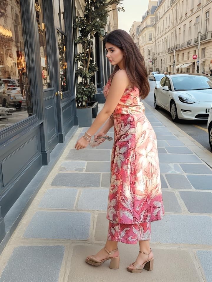 Anni Designer Women'S Rayon Viscose Printed Straight Kurta With Palazzo (Vcm Pink-Vks02_S_Pink_Small)