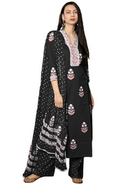 Anni Designer Women'S Rayon Viscose Printed Straight Kurta With Pant & Dupatta (Belagavi Black-Vks01_5Xl_Black_Xxxxx-Large)