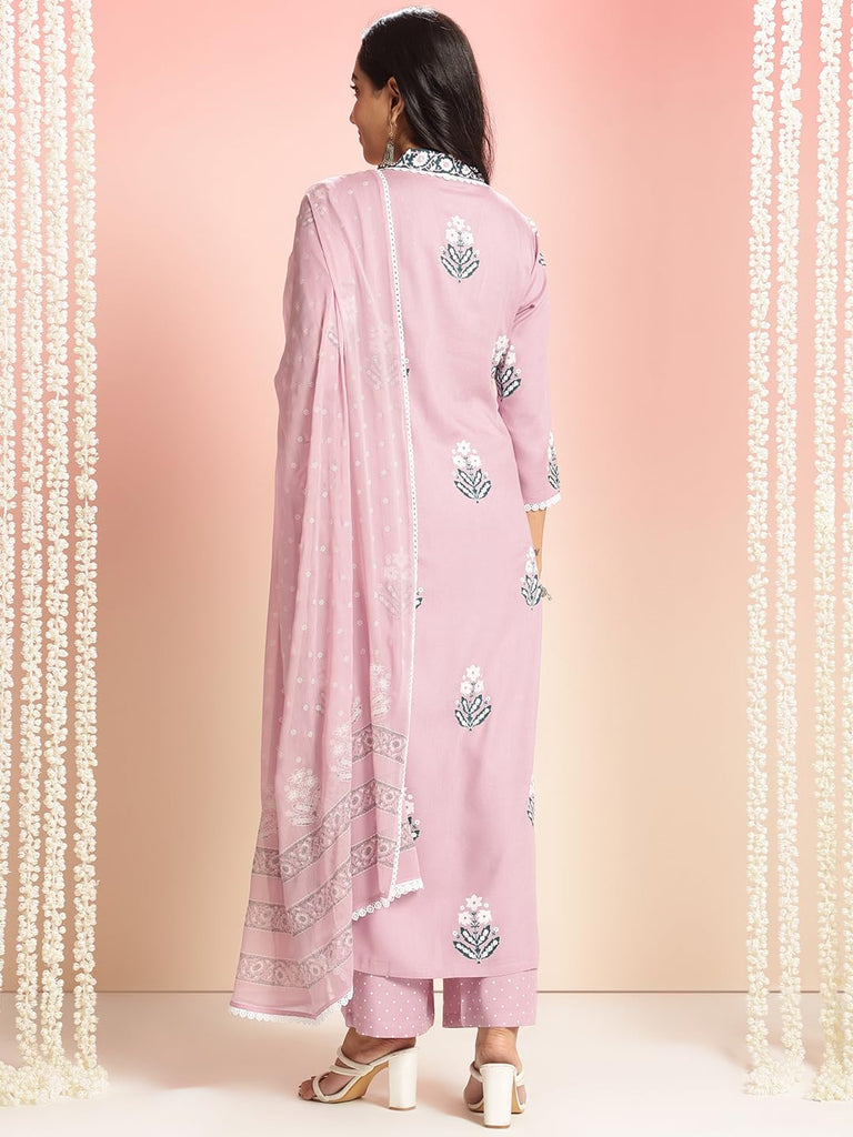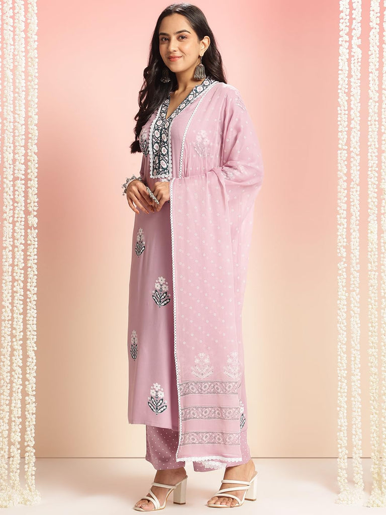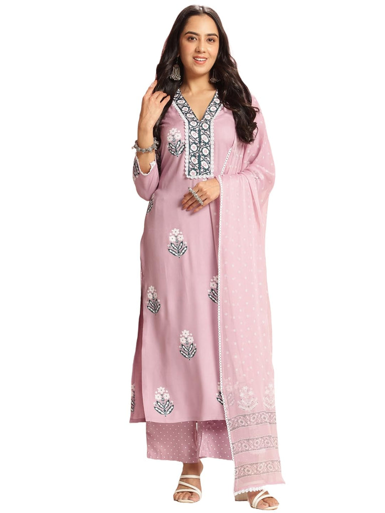 Anni Designer Women'S Rayon Viscose Printed Straight Kurta With Pant & Dupatta (Belagavi Purple-Vks05_M_Purple_Medium),Purple,M,Rayon,Regular,