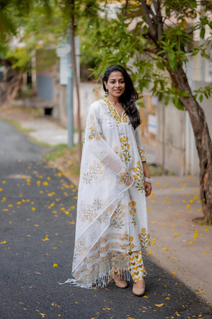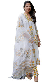 The kurta set is primarily white, though there may be slight variations in color due to different screen resolutions.