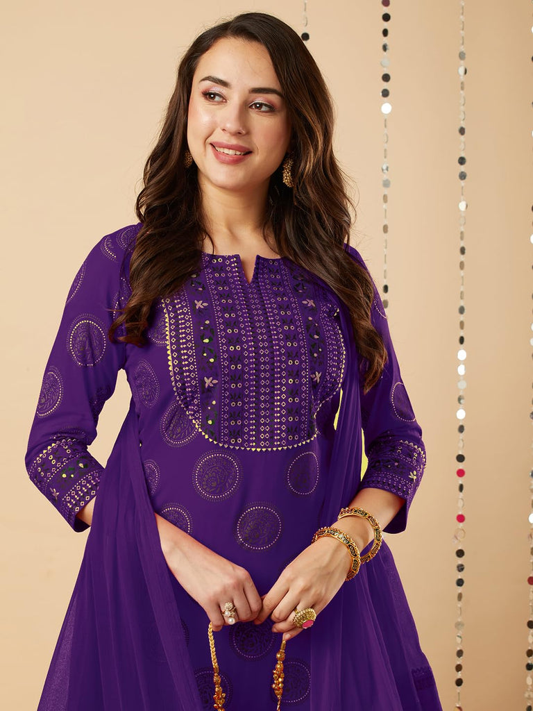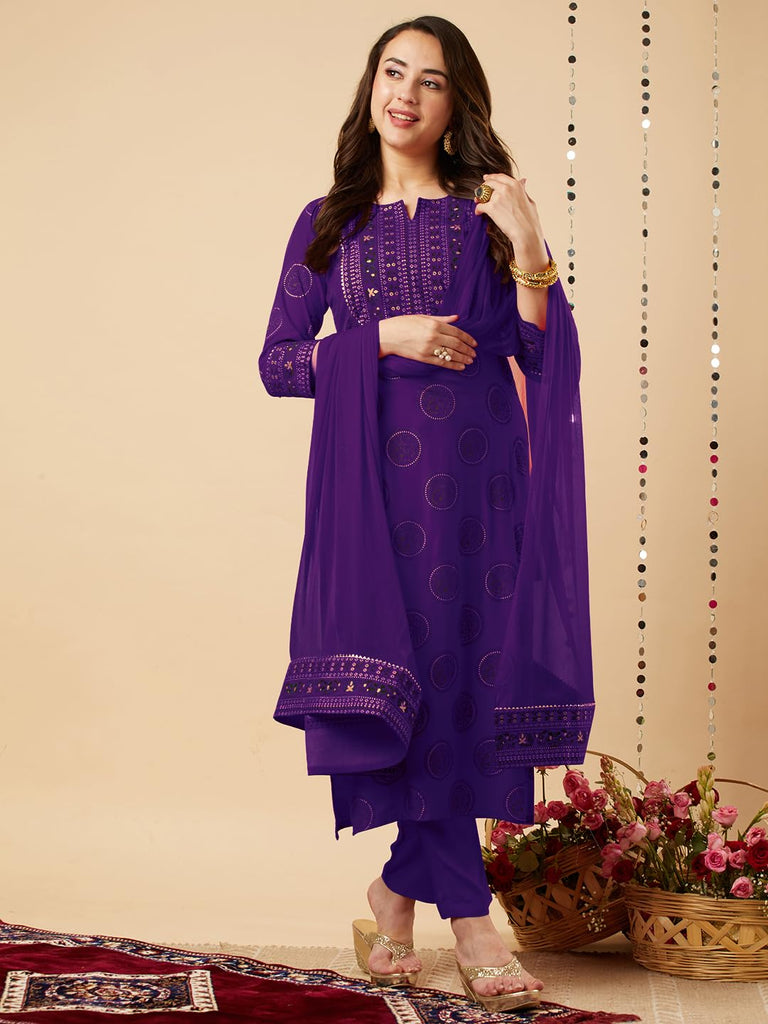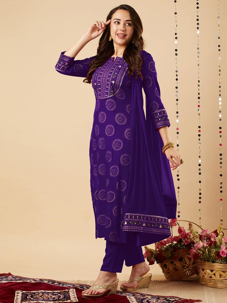 Anni Designer Women'S Rayon Viscose Printed Straight Kurta With Pant & Dupatta (Nov Begani-Vks01_S_Begani_Small),Begani,S,,,