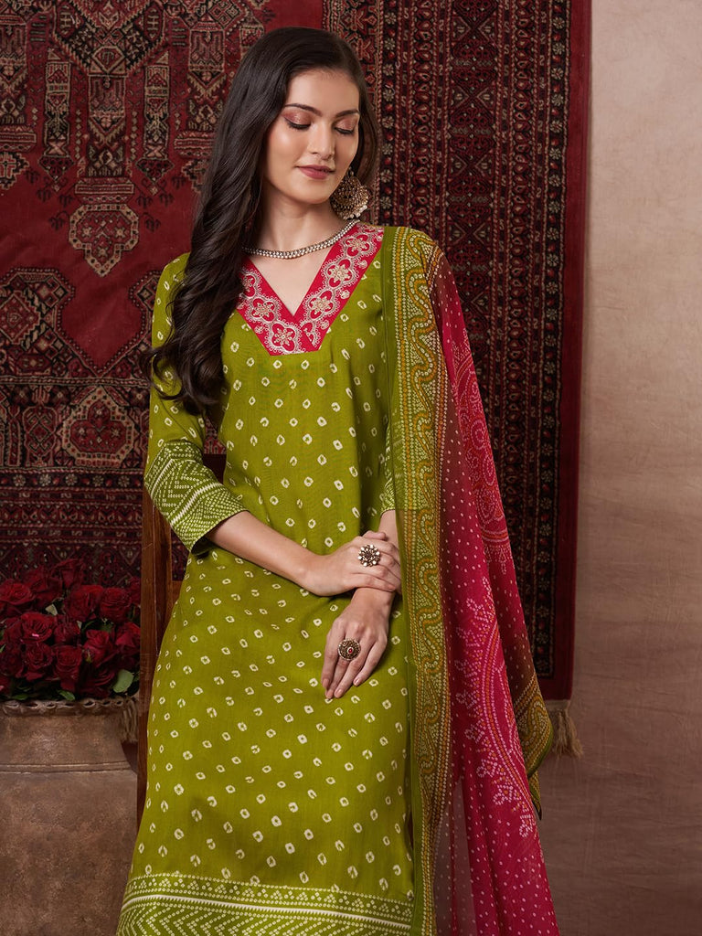 Anni Designer Women'S Rayon Viscose Printed Straight Kurta With Pant & Dupatta (Subhi Mehandi-Vks04_Xxl_Mehandi_Xx-Large)