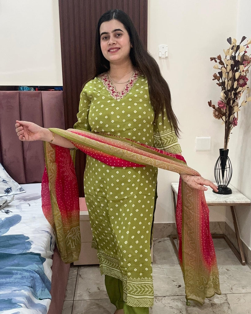 Anni Designer Women'S Rayon Viscose Printed Straight Kurta With Pant & Dupatta (Subhi Mehandi_Xxl_Mehandi_Xx-Large),Mehandi,2XL,,,