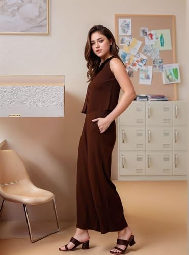 Anni Designer Women'S Rayon Viscose Short Solid Waist-Coat With Trouser Set (Fazluna Brown_Xl_Brown_X-Large)