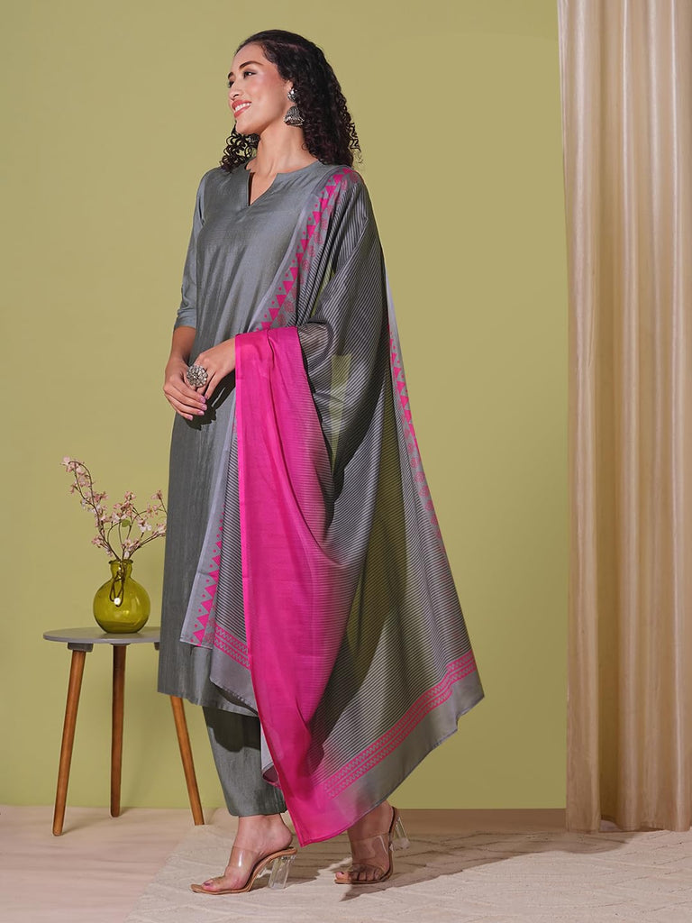 Anni Designer Women'S Rayon Viscose Solid Straight Kurta With Pant & Dupatta (Mogul Grey-Vks01_M_Grey_Medium)
