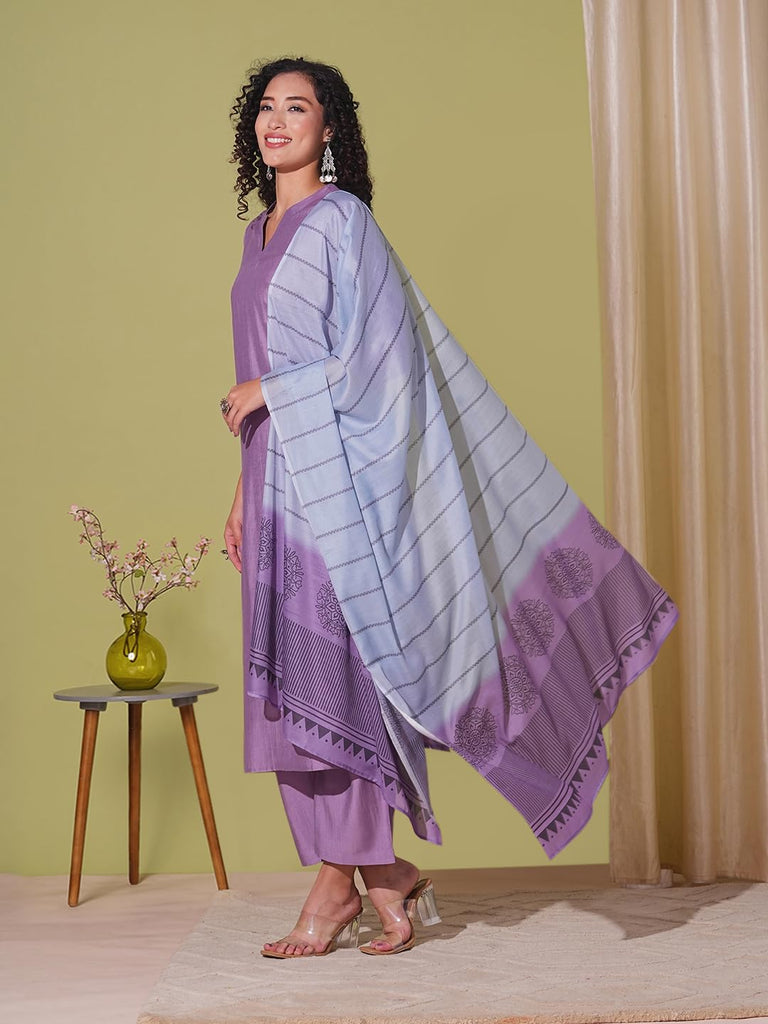 Anni Designer Women'S Rayon Viscose Solid Straight Kurta With Pant & Dupatta (Paradise Purple-Vks01_S_Purple_Small)