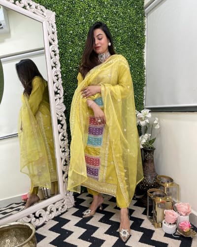 Anni Designer Women'S Rayon Viscose Straight Embroidered Kurta With Pant & Dupatta (Art Lemon-Vks01_S_Green_Small)