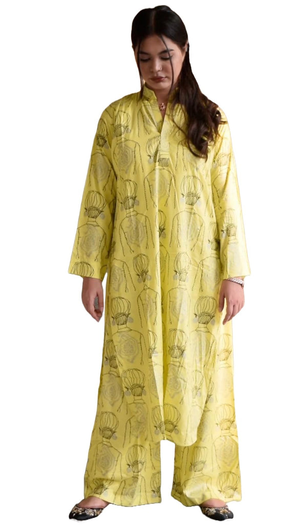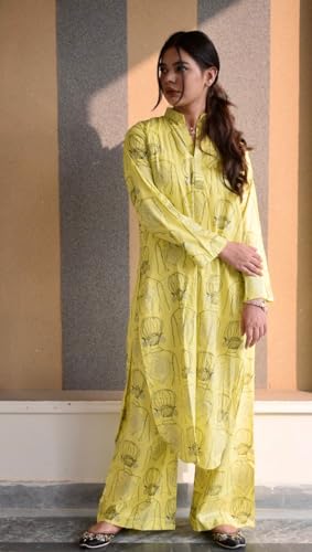 Anni Designer Women'S Rayon Viscose Straight Printed Kurta With Palazzo (Canva Yellow-Vks01_Xl_Yellow_X-Large),Yellow,XL,Rayon,Casual,