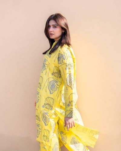 Anni Designer Women'S Rayon Viscose Straight Printed Kurta With Palazzo (Canva Yellow_Xl_Yellow_X-Large),Yellow,XL,Rayon,Regular,