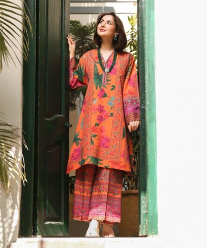 Anni Designer Women'S Rayon Viscose Straight Printed Kurta With Palazzo (Jamat Orange_Xxl_Orange_Xx-Large),Orange,2XL,Rayon Viscose,Pakistani,