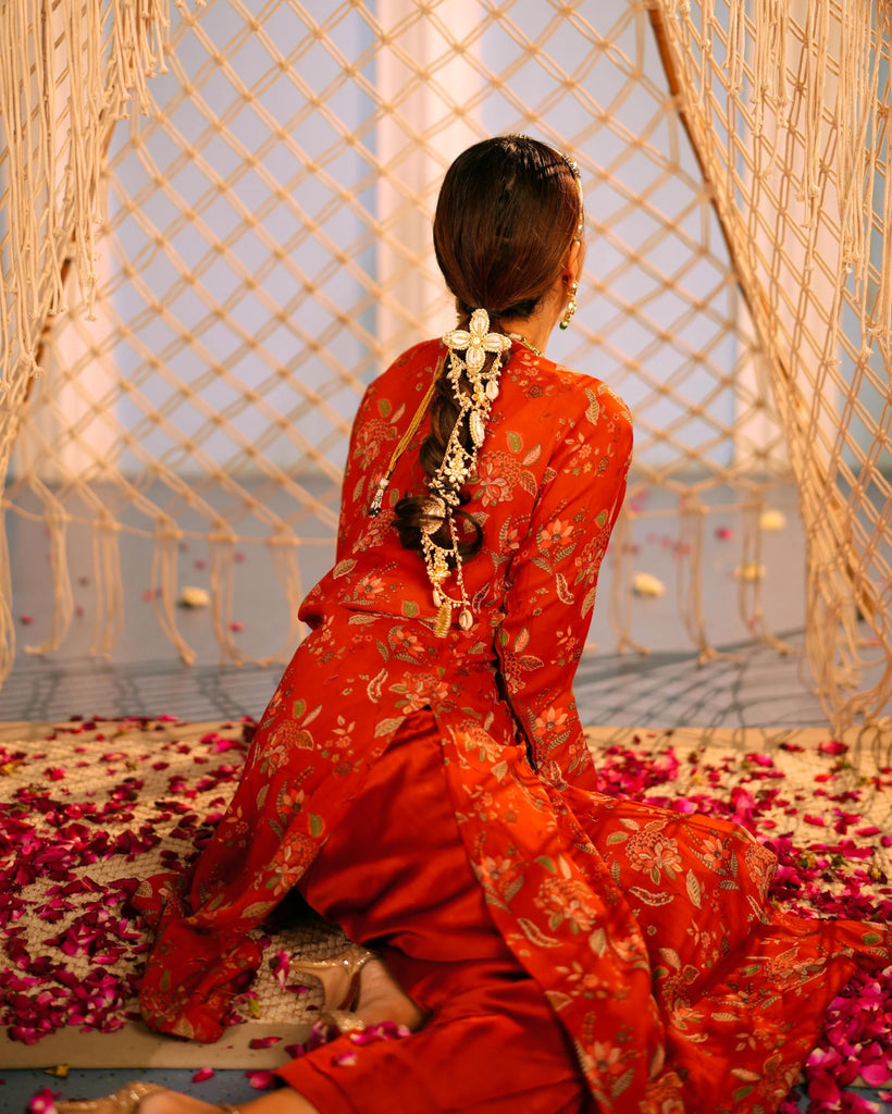 The kurta is available in sizes S-36, M-38, L-40, XL-42, and XXL-44. The trousers come in sizes S-28, M-30, L-32, XL-34, and XXL-36.
