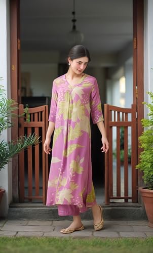 Anni Designer Women'S Rayon Viscose Straight Printed Kurta With Palazzo (Wanda Purple-Vks03_S_Purple_Small)