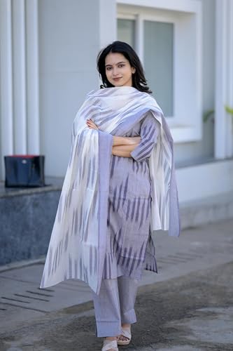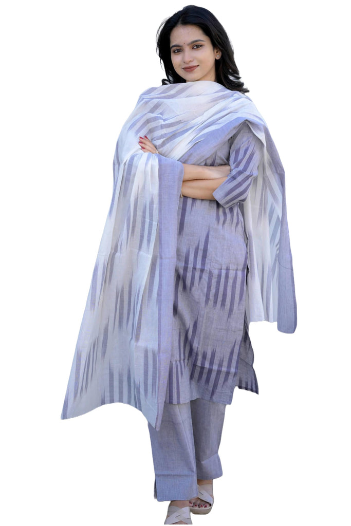 The set includes one kurta, one pant, and a dupatta, providing a complete traditional outfit.