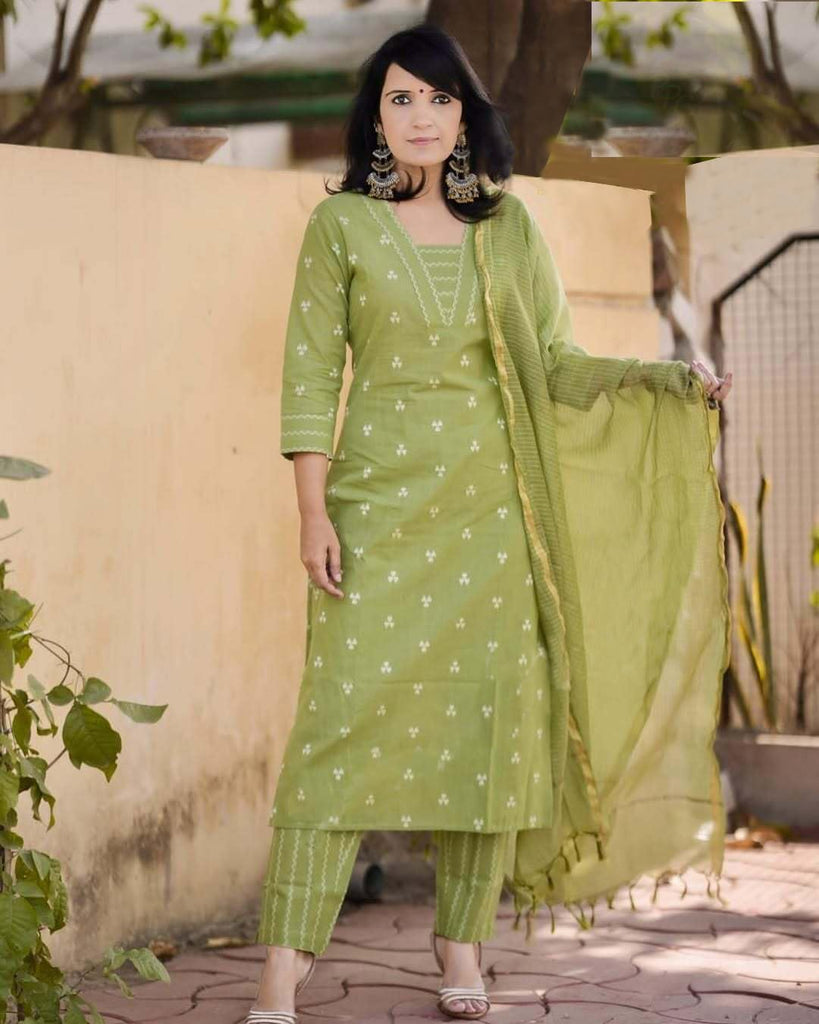 Anni Designer Women'S Rayon Viscose Straight Printed Kurta With Pant & Dupatta (Maheman Pista_S_Pista_Small)