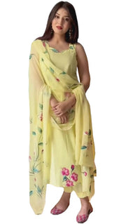 Anni Designer Women'S Rayon Viscose Straight Printed Kurta With Pant & Dupatta (Rehnuma Yellow_S_Yellow_Small)
