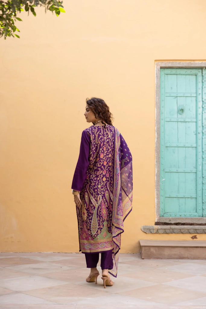 Anni Designer Women'S Rayon Viscose Straight Printed Kurta With Pant & Dupatta (Setul Begani_Xl_Begani_X-Large),Begani,XL,Rayon Viscose,Regular,
