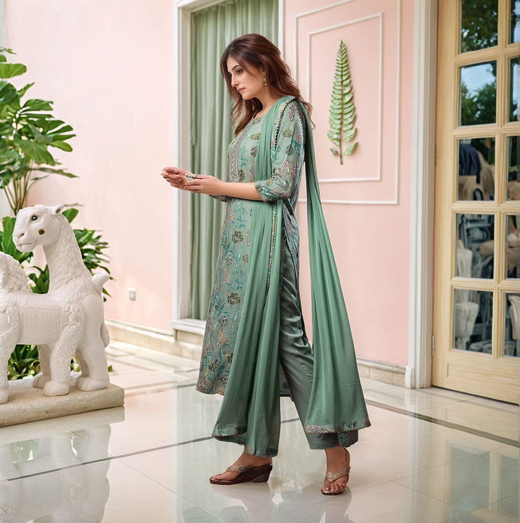 Anni Designer Women'S Rayon Viscose Straight Printed Kurta With Pant & Dupatta (Vice Green-Vks04_5Xl_Green_Xxxxx-Large),Green,5XL,,,