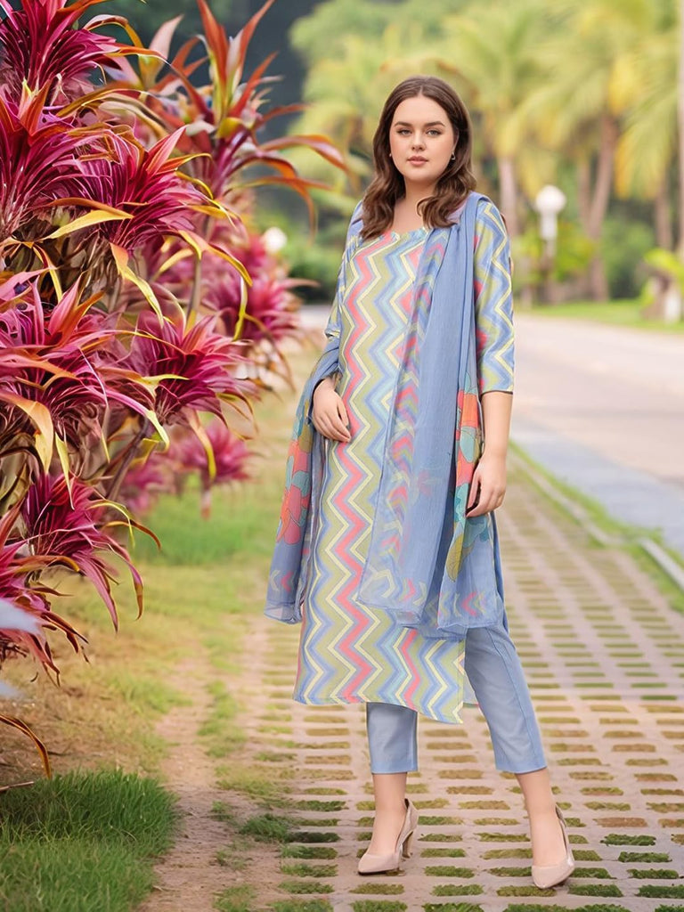 Anni Designer Women'S Rayon Viscose Straight Printed Kurta With Pant & Dupatta (Zaggu Blue-Vks02_L_Blue_Large),Blue,L,Rayon,Regular,