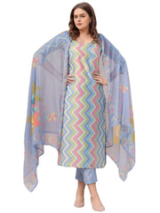 Anni Designer Women'S Rayon Viscose Straight Printed Kurta With Pant & Dupatta (Zaggu Blue-Vks02_Xl_Blue_X-Large),Blue,XL,Rayon,Regular,