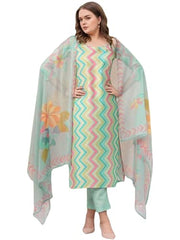 Anni Designer Women'S Rayon Viscose Straight Printed Kurta With Pant & Dupatta (Zaggu Pista-Vks01_L_Pista_Large)