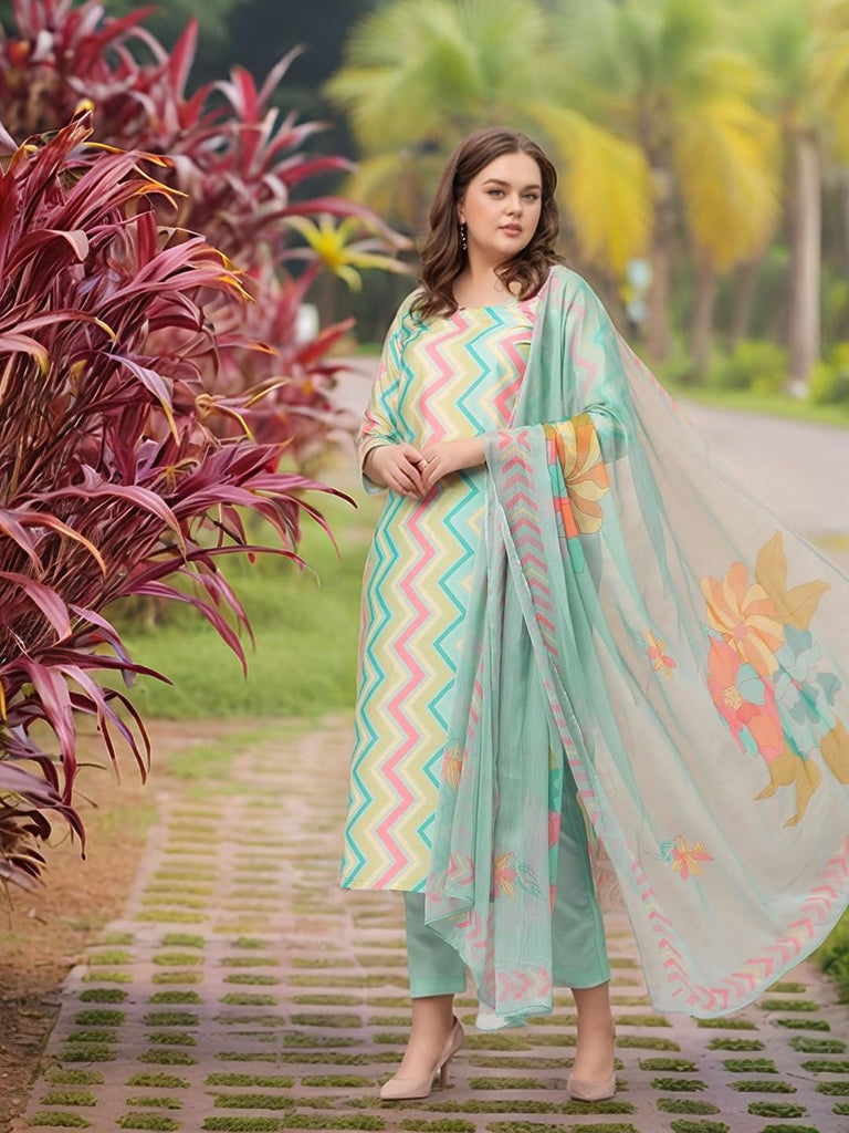 Anni Designer Women'S Rayon Viscose Straight Printed Kurta With Pant & Dupatta (Zaggu Pista-Vks02_Xl_Pista_X-Large),Pista,XL,Rayon,Regular,