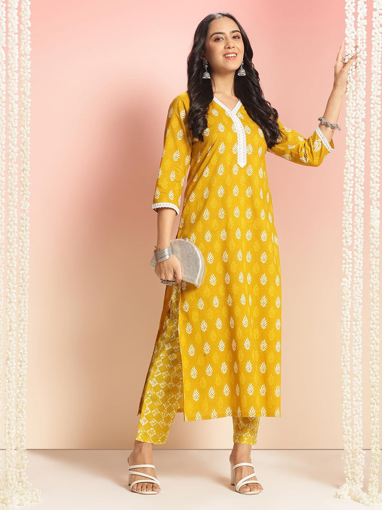 Anni Designer Women'S Rayon Viscose Straight Printed Kurta With Pant (Goyala Yellow_Xxl_Yellow_Xx-Large),Yellow,2XL,,,