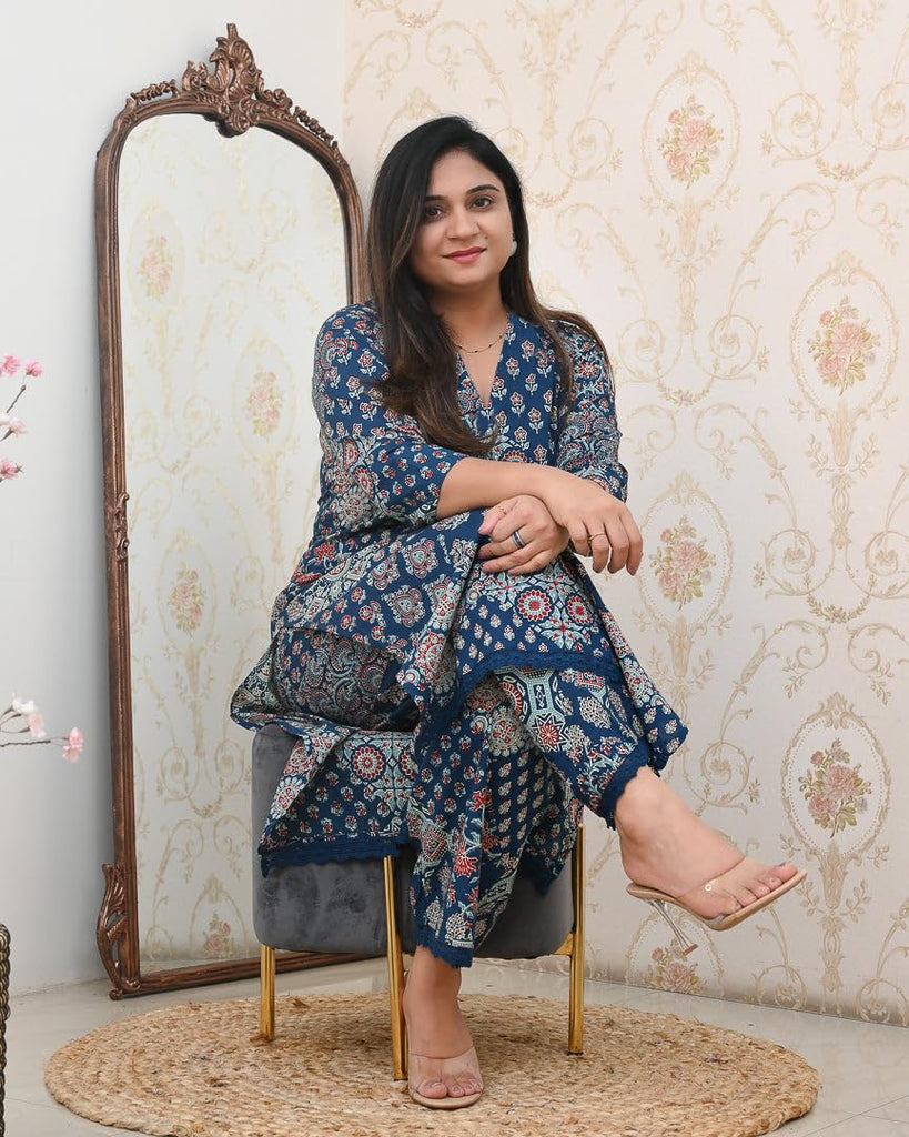 Anni Designer Women'S Rayon Viscose Straight Printed Kurta With Pant (Kadai Blue-Vks01_Xxl_Blue_Xx-Large)