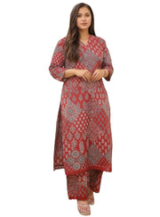 Anni Designer Women'S Rayon Viscose Straight Printed Kurta With Pant (Kadai Red-Vks02_L_Red_Large),Red,L,Rayon,Regular,