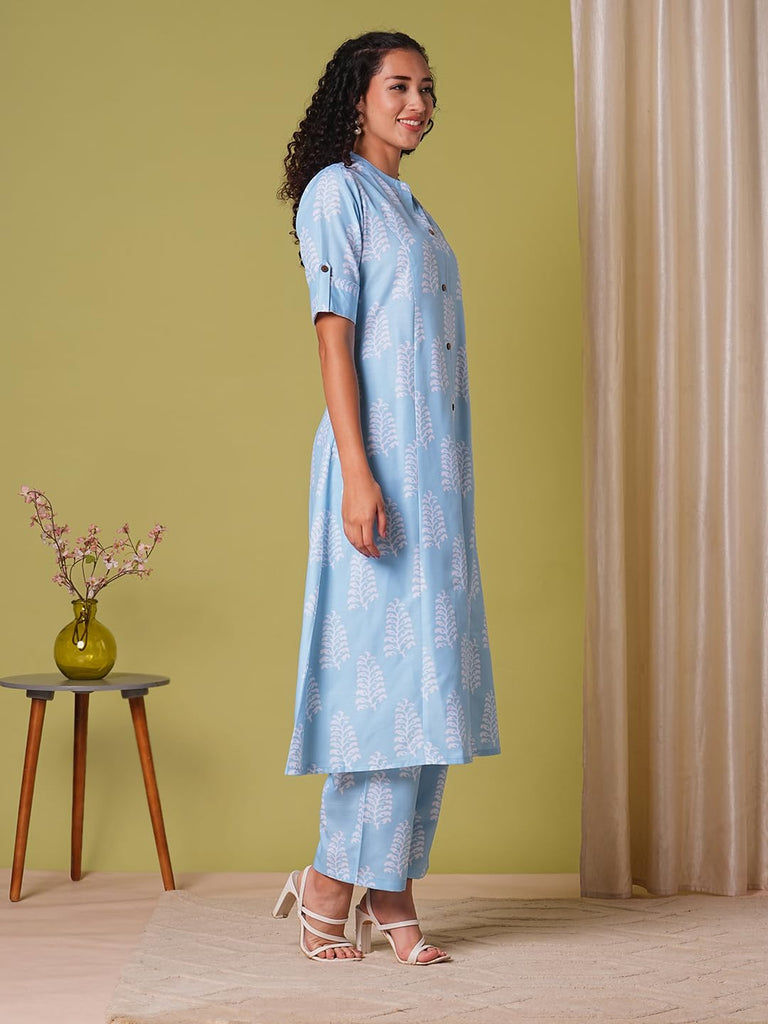 Anni Designer Women'S Rayon Viscose Straight Printed Kurta With Pant (Kopek Sky-Vks04_S_Sky Blue_Small)