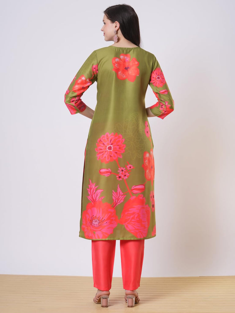 Anni Designer Women'S Rayon Viscose Straight Printed Kurta With Pant (Lilapa Green-Vks02_Xl_Green_X-Large),Green,XL,Rayon Blend,Classic,