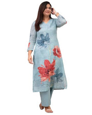 Anni Designer Women'S Rayon Viscose Straight Printed Kurta With Pant (Susan Sky-Vks01_S_Sky Blue_Small)