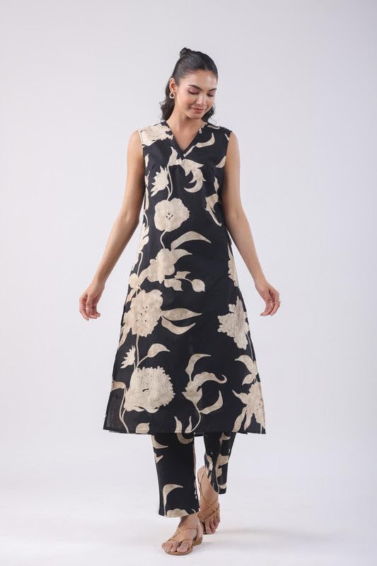 Anni Designer Women'S Rayon Viscose Straight Printed Kurta With Pant (Teras Black_S_Black_Small)