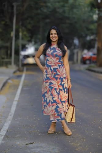 Anni Designer Women'S Rayon Viscose Straight Printed Kurta With Pant (Vcm Cerosin_S_Dark Blue_Small),Dark Blue,S,Rayon Blend,Classic,