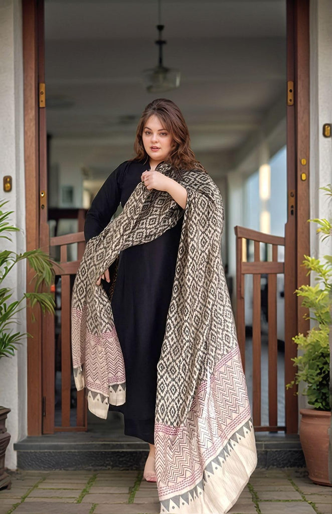 Anni Designer Women'S Rayon Viscose Straight Solid Kurta With Pant & Dupatta (Jamana Black-Vks05_5Xl_Black_Xxxxx-Large)