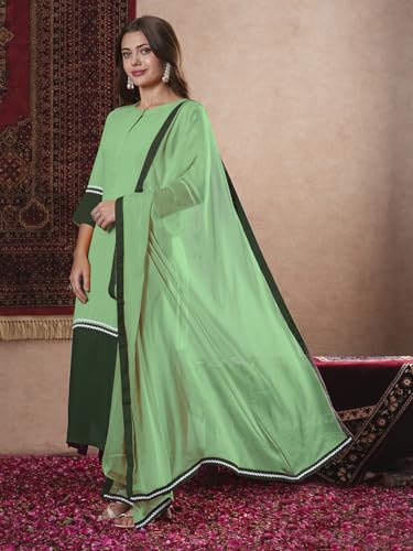 Anni Designer Women'S Rayon Viscose Straight Solid Kurta With Pant & Dupatta (Panai Mint_Xl_Light Green_X-Large),Light Green,XL,Rayon,Casual,
