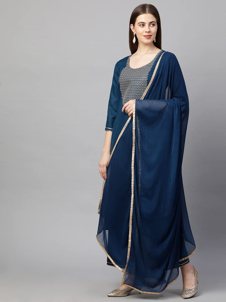 Descriptionanni Designer Women'S Ruby Cotton Solid Straight Kurti With Palazzos & Dupatta Set (Label Cerosin_4Xl_Blue_Xxxx-Large)