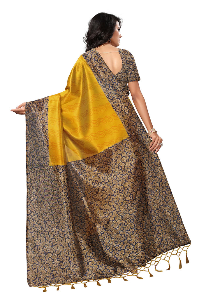 Descriptionart Dcor Women'S Saree Mysore Silk Mustard & Multi Printed With Tassels Border Saree With Blouse. Saree Fabric: Mysore Silk Blouse Fabric: Mysore Silk.