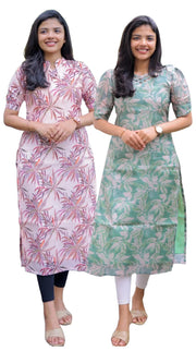 Anni Designer Women'S Viscose Chanderi Floral Regular Kurta Pack Of 3 & Pack Of 2 Combo (Godavari-Kakulam-Clrs_Pink-Green_Small),Pink-Green,S,Rayon,Casual,