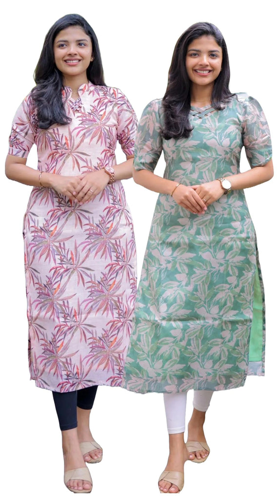 Anni Designer Women'S Viscose Chanderi Regular Fit Floral Regular Kurta Pack Of 3 & Pack Of 2 Combo (Godavari-Kakulam-Clrs_Pink-Green_Xx-Large),Pink-Green,2XL,Rayon Blend,Regular,