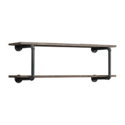 The antique metal and wood finishes of the wall rack complement rustic, industrial, and vintage decor styles.