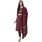 DescriptionAnubhutee brings to you apparel that is made from quality fabric with solid prints and colors. This product has been designed keeping in mind the aim in a contemporary casual fashion. It combines ethnic with the fashion of today and makes you stand out among others when you adorn it. From casual to work and parties to pooja. Pair it with chunky, bright earrings and a clutch or high heels, and a striking nose pin. This is certainly one of the most preferred dresses worn among Indian women who wish to look different from the crowd on special occasions. Anubhutee offers a refreshing fashion for the new age endearingly beautiful Indian woman, with a constant endeavor to provide the best value. We strive to mirror magnificent workmanship by our team in each & every curated garment giving the women an elegant and exquisite style. Our collection includes different styles of Straight Kurti, kurta palazzo set, Kurta trouser set, that cater to a wide variety of the wardrobe requirements of the Indian woman. Make a fine addition to your wardrobe by adding this beautiful Kurta with Trouser and Dupatta Set from Anubhutee's wardrobe.