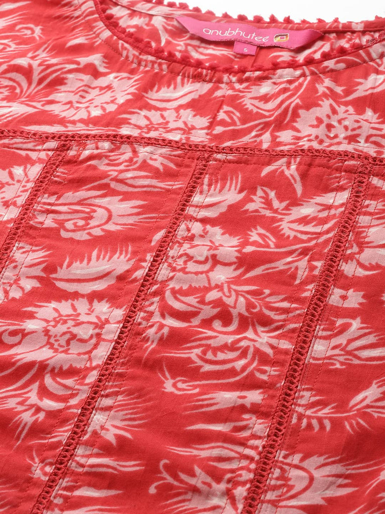 Anubhutee Women'S Cotton Printed A-Line Kurta Suit Set With Dupatta & Pants Abwsd2234_Rd_S_Red