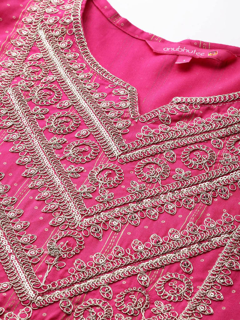 Anubhutee Women'S Pink Gotawork Printed Kurta Set With Trousers And Dupatta Pink Xl