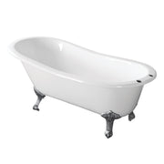 Aqua Eden Vct7D673122Zb1 67-Inch Cast Iron Single Slipper Clawfoot Tub With 7-Inch Faucet Drillings, White/Polished Chrome