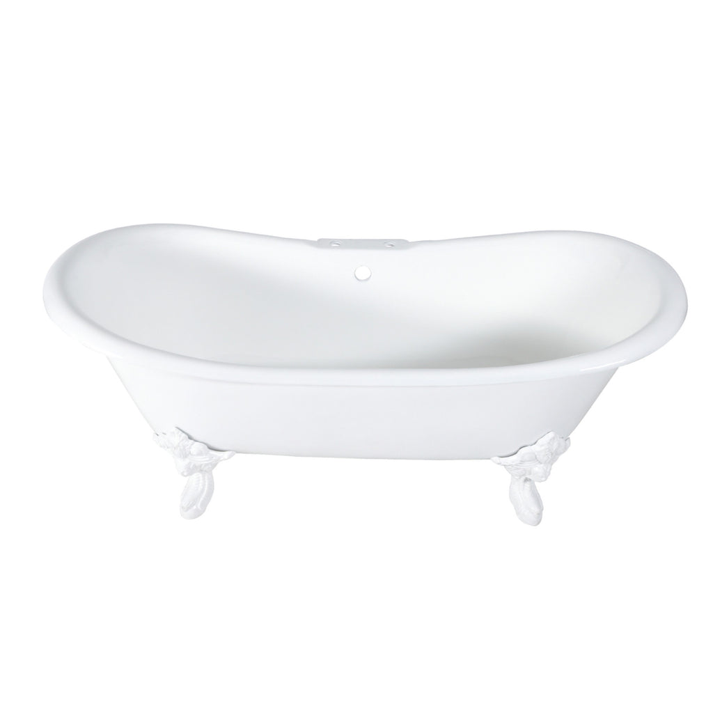 Aqua Eden Vct7Ds7231Nlw 72-Inch Cast Iron Double Slipper Clawfoot Tub With 7-Inch Faucet Drillings, White