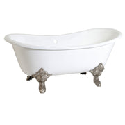 Aqua Eden Vctnds6731Nl8 67-Inch Cast Iron Double Slipper Clawfoot Tub (No Faucet Drillings), White/Brushed Nickel