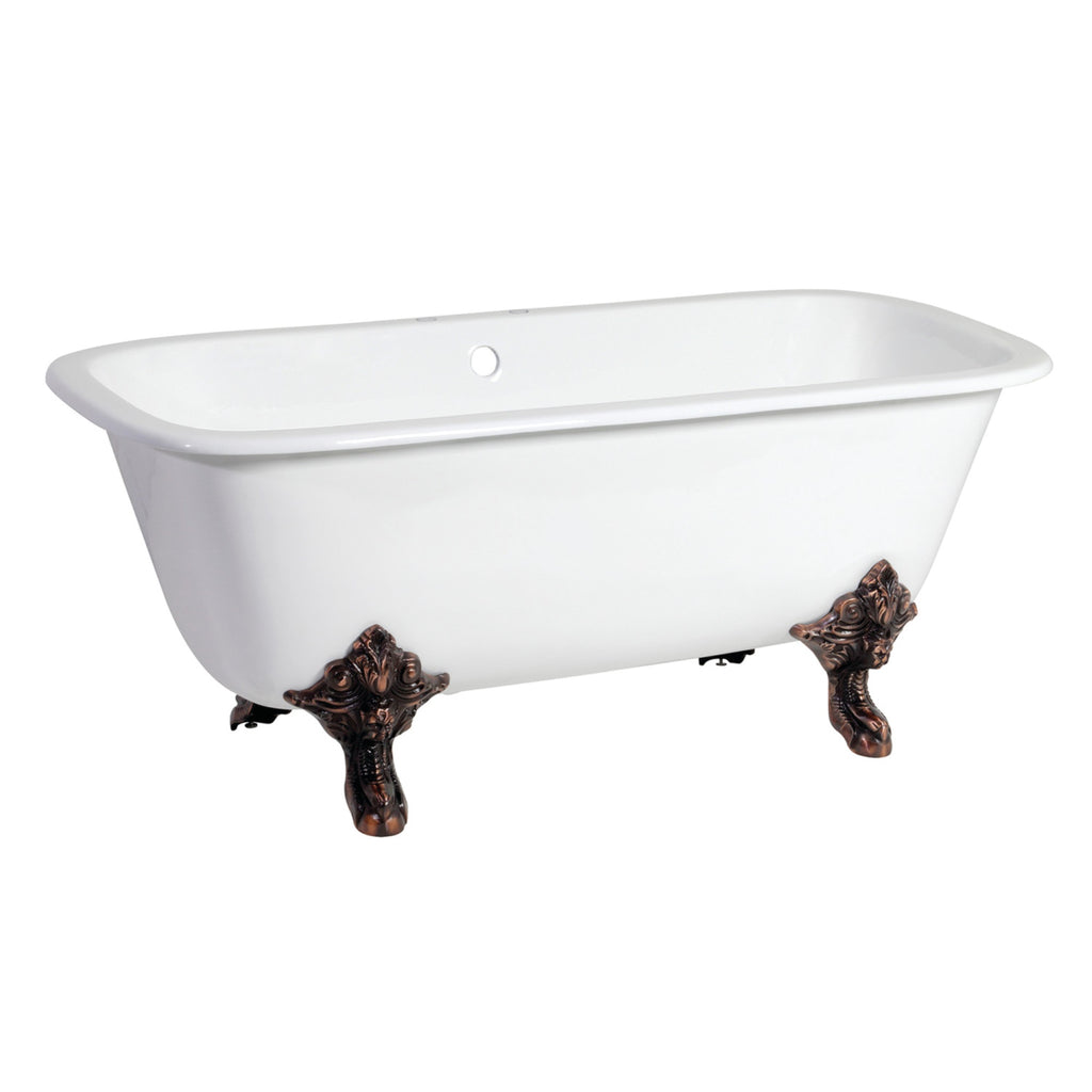 Aqua Eden Vctq7D6732Nl5 67-Inch Cast Iron Double Ended Clawfoot Tub With 7-Inch Faucet Drillings, White/Oil Rubbed Bronze