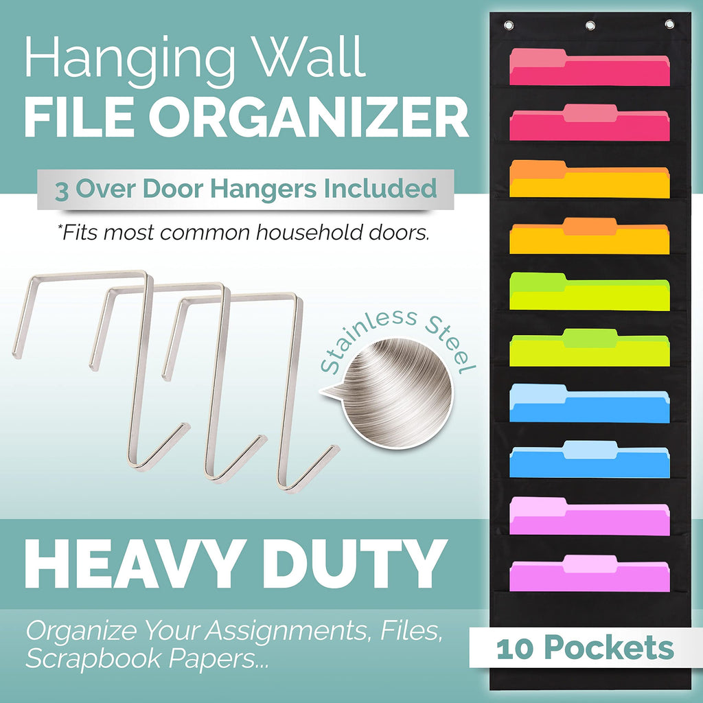 Hippo Creation Storage Pocket Chart is designed and manufactured at the highest quality. Its ideal for settings such as office and classroom to organize your files, documents, any other paperworks and stationaries. ? Specifications Size: 14 x 47 x 0.5 inches Weight: 6 ounces Included in the box: A pocket chart, 3 over door hangers NOTE:File folders shown in the pictures are for demonstration purpose only and are not included in the package.